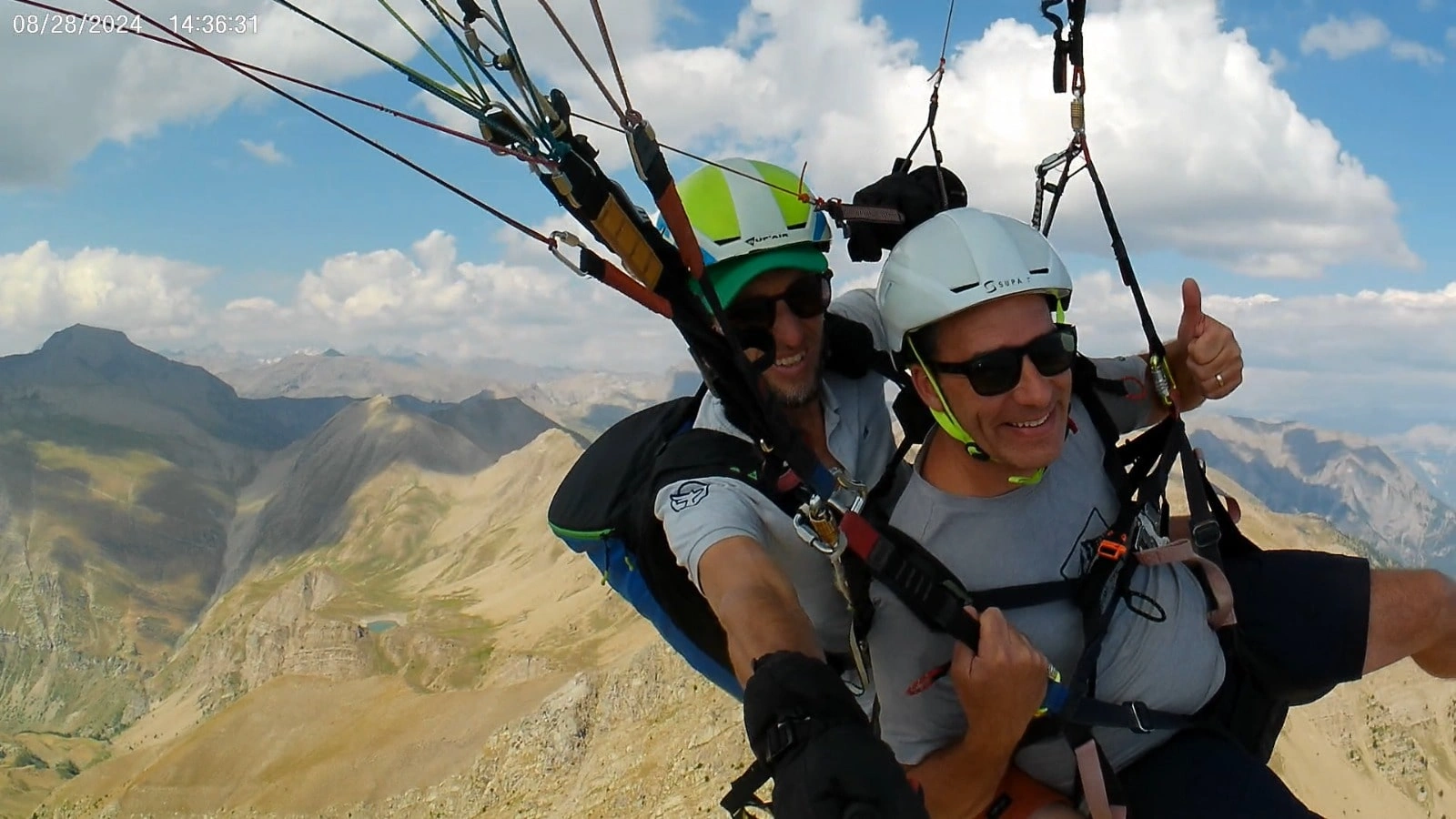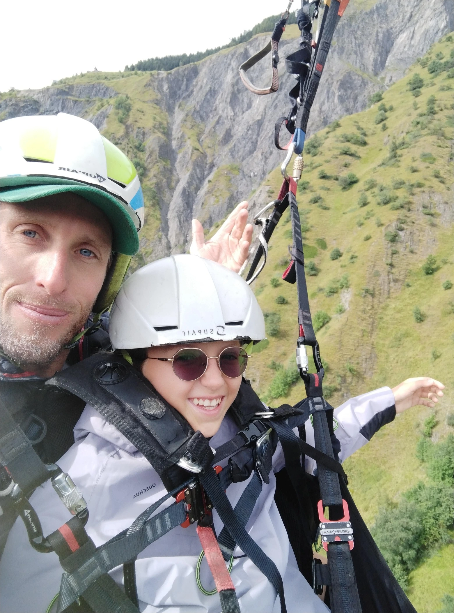 Quels pieds !!! MERCI Romain pour ce magnifique vol ascendant pour ma part, au dessus du mont Guillaume ( 3000m). Et le vol découverte au dessus du Lac de serre-ponçon, pour ma chérie. La vue est à couper le souffle ! Nous avons apprécié ta bonne humeur, ainsi que celles de tes parents. Ta gentillesse. Ton professionnalisme. Vous nous avez fait vivre une expérience incroyable. Je recommande à 100%