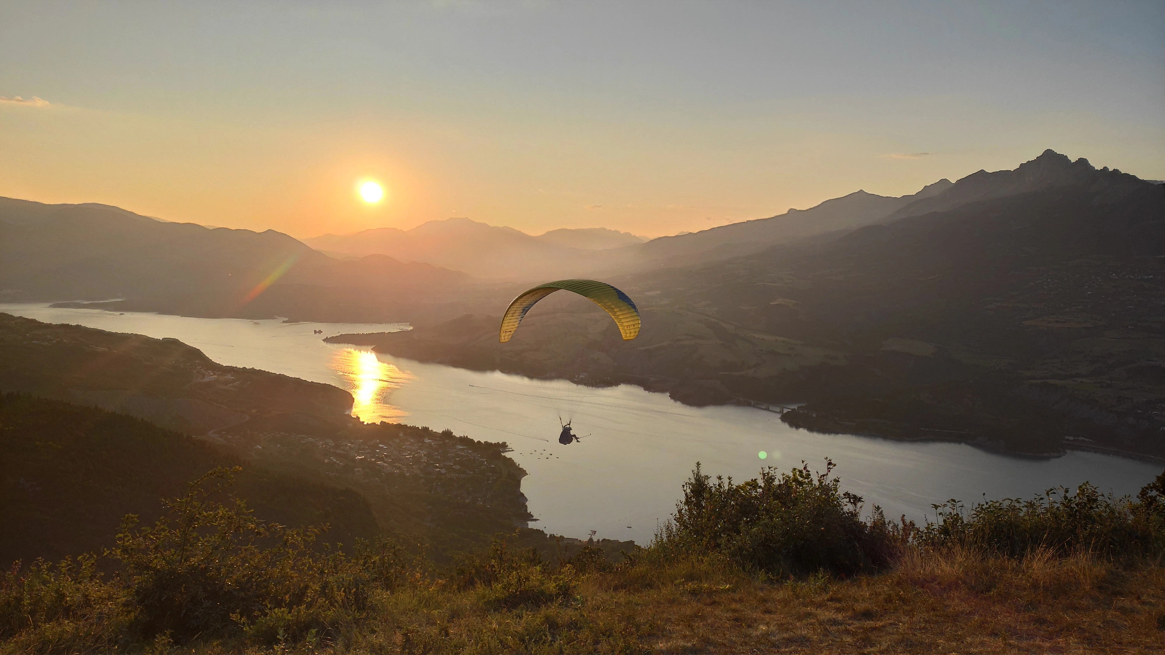 Un immense merci Romain pour mon baptême de parapente Merci aussi à ton papa pour sa présence Je garde un souvenir incroyable de ce premier vol. Romain est pédagogue, très sympa et nous partage sa passion à cœur ouvert. Le coucher de soleil au dessus du lac de Serre Ponçon restera gravé ! Au plaisir pour de nouvelles aventures